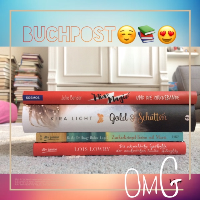 Darunter seht ihr Gold & Schatten. Das Buch stand schon lange auf meiner Wunschliste und jetzt habe ich es bei einer Verlosung von Bastei Lübbe gewonnen. Ganz unten sind zwei Bücher von dtv junior: Zuckerkringelferien mit Marie und Die schreckliche Geschichte der abscheulichen Familie Willoghby. Ich bin schon sehr gespannt auf die ganzen Bücher!